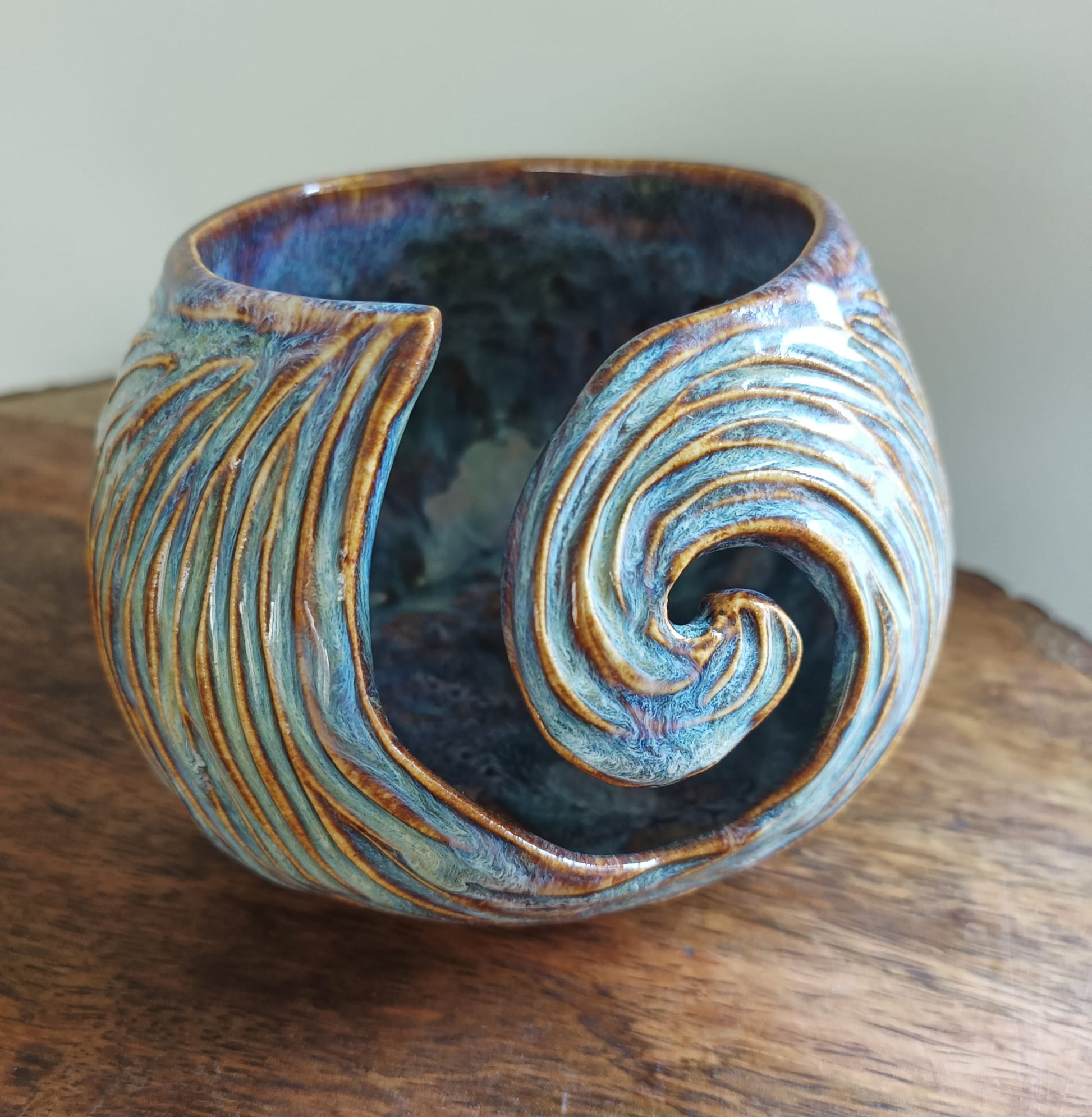 Stunning handmade ceramic yarn bowl! These bowls are made for us by the incredibly talented Cathrin Fehu based in Bulgaria. Each piece is a unique work of functional art.