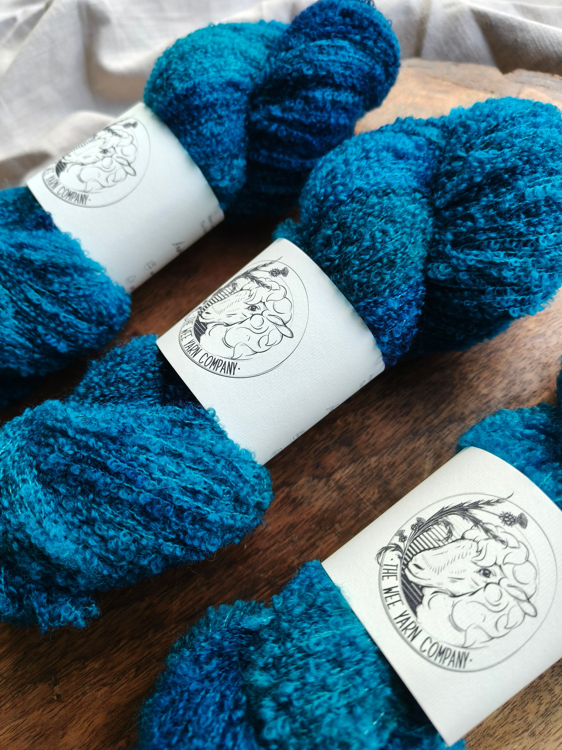 Hyacinth Bouclé is a fabulous lace weight Merino Bouclé yarn perfect for adding amazing texture to your projects. The characteristic loops of Bouclé make the most of the buttery softness that makes merino so popular and the nylon core will add some strength to the overall fabric.