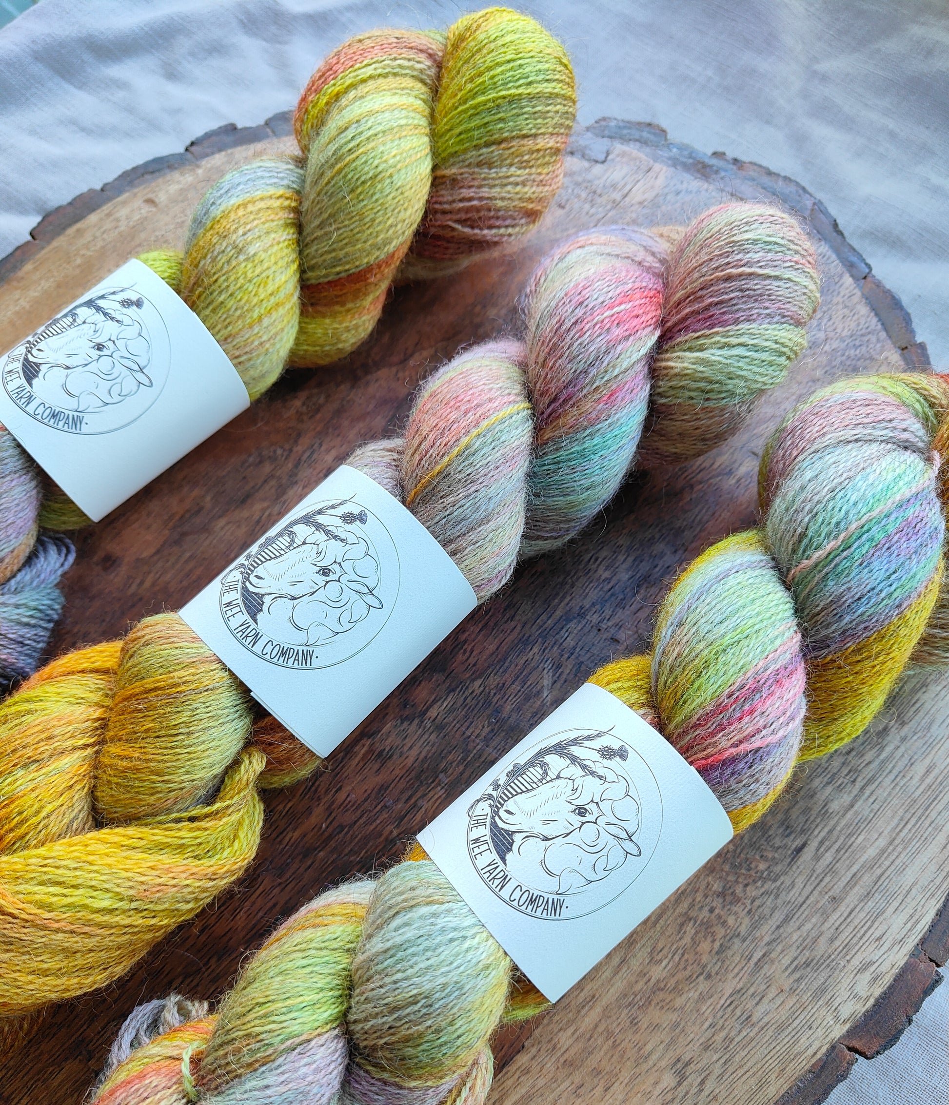 Casta Lace is our first custom milled base, created exclusively for us! Oh and let me tell you, she's a beauty. This yarn is 50% Falkland Merino, 25% Gotland, & 25% Corriedale. 3 fabulous sheep breeds each adding their unique characteristics to this wonder wool! Falkland Merino gives a beautiful soft handle to the yarn, while the Gotland adds a grey-heathering and a slight halo from the crimpy fibres, and then Corriedale helps with squishability. Gotland also has incredible lustre which adds a stunning sheen!