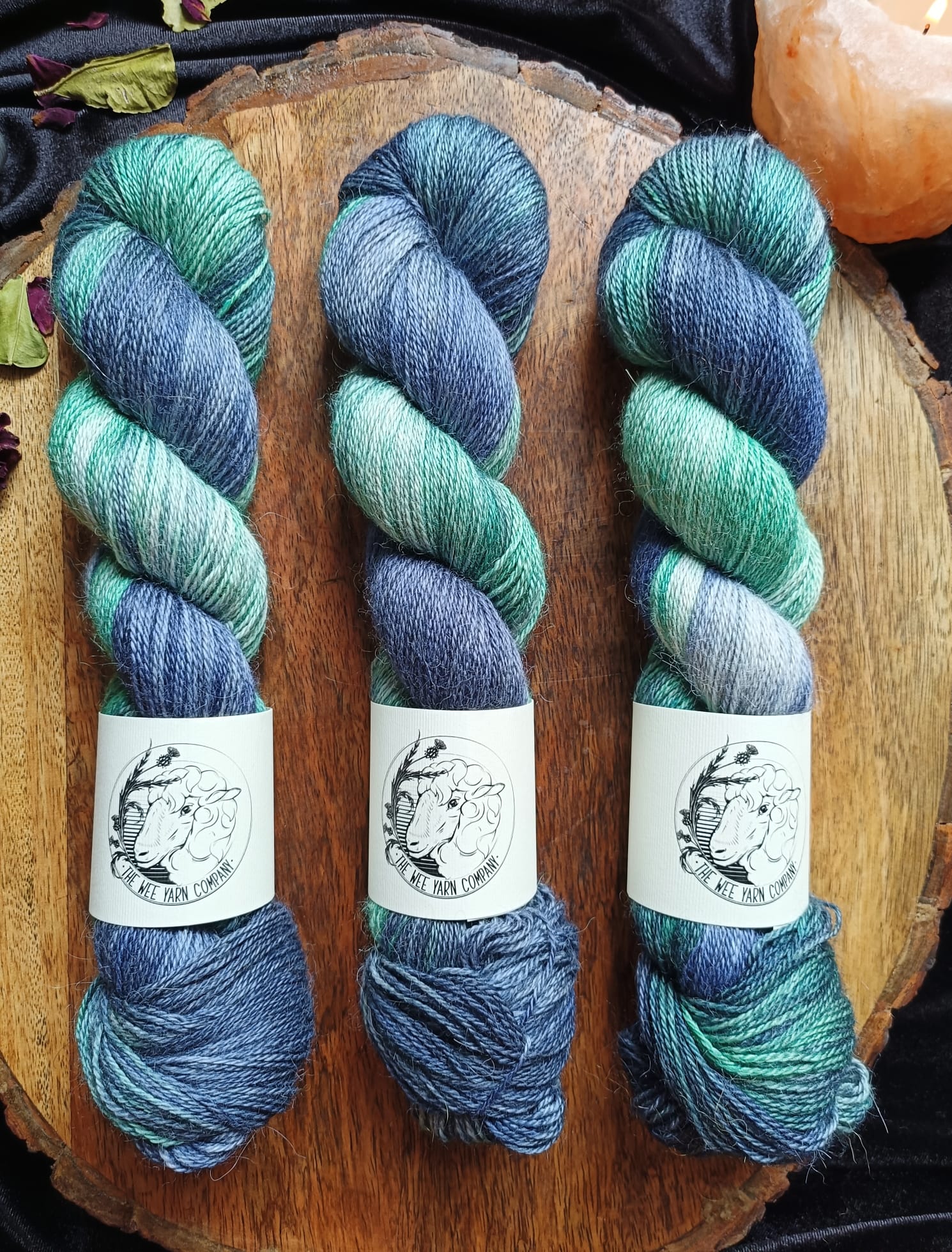 Agnes 3ply is a non-superwash fingering weight yarn. 70% baby Alpaca, 20% Silk and 10% Cashmere. 100g - 400m.