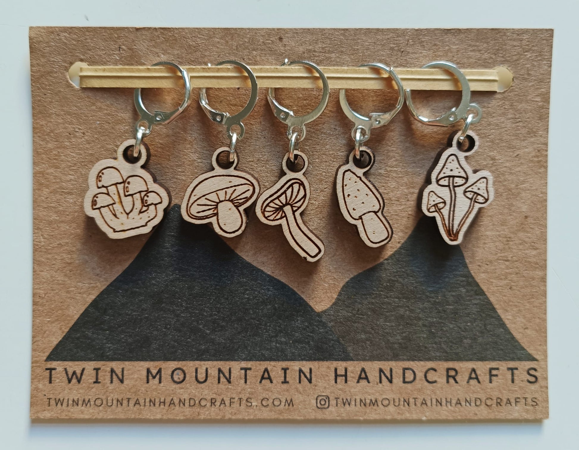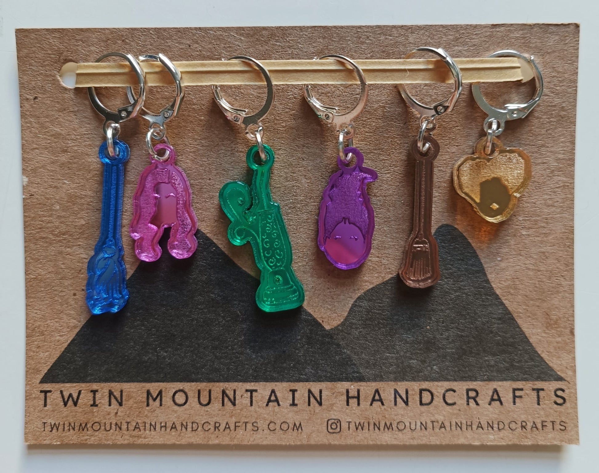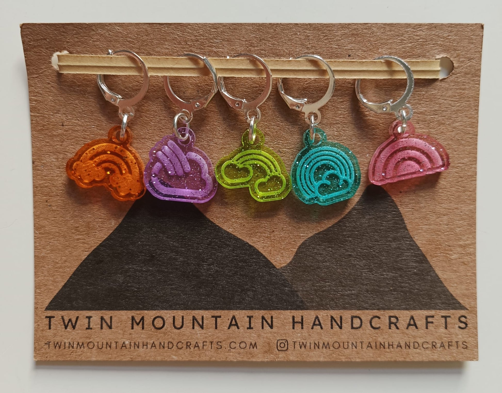 Fabulous stitch markers with cool graphic designs made by the wonderful Twin Mountain Handcrafts in the Blue Ridge Mountains in Virginia.