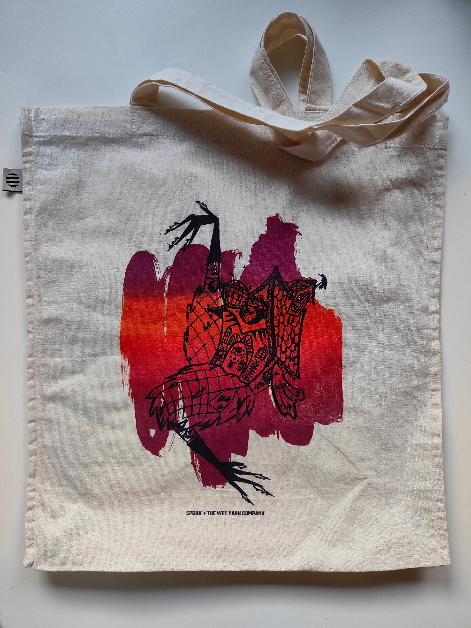 These organic cotton tote bags, measuring 38 x 42 x 9 cm, are extra wide and roomy perfect for taking your projects on the go to the forest, the clerb, or wherever. They are designed and screen printed by the wonderful Spouk in Groningen and each item is as unique and beautiful as hand-dyed yarn.