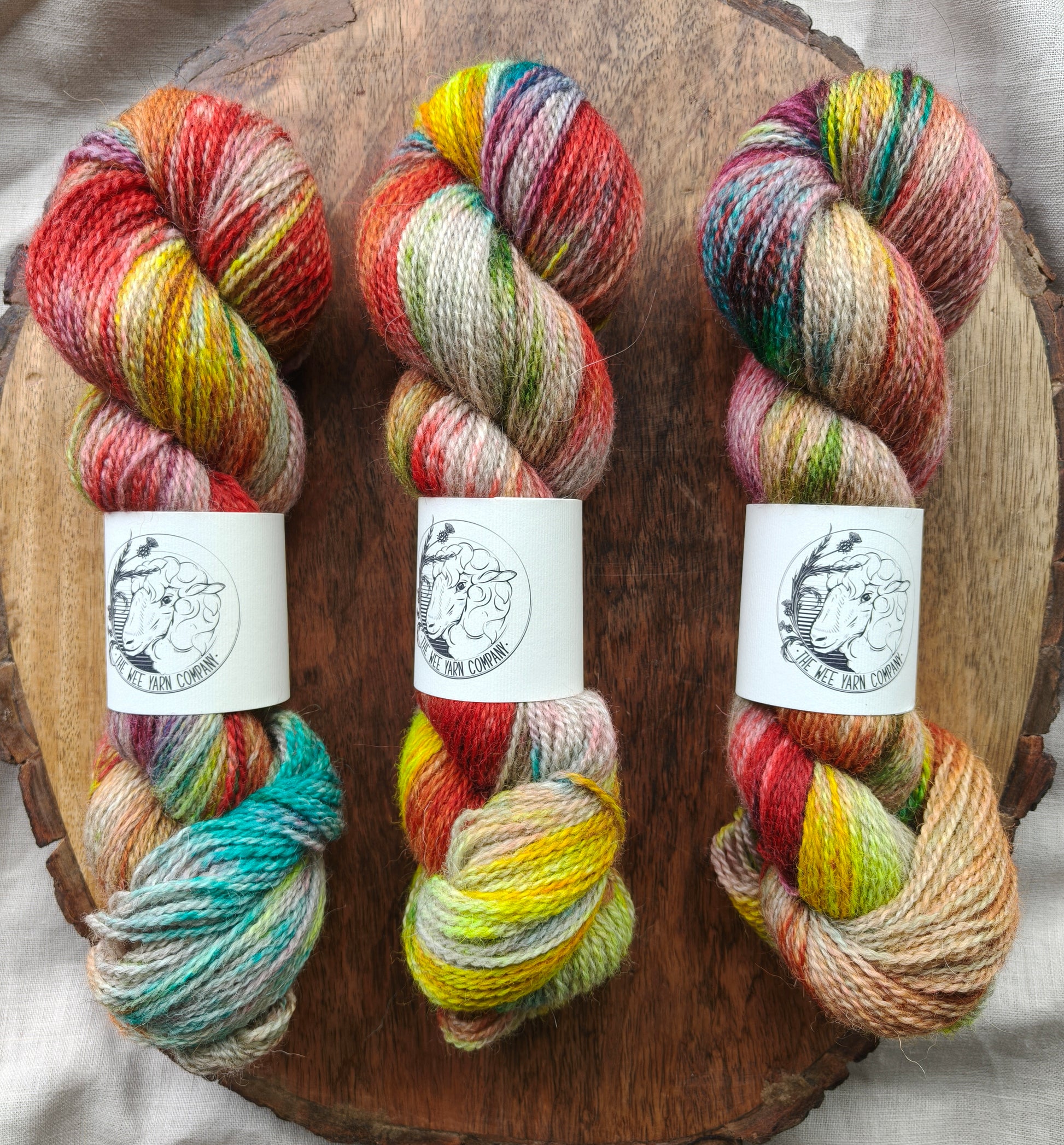 When purchasing hand dyed yarns, we recommend you purchase a sufficient amount of yarn for your project.