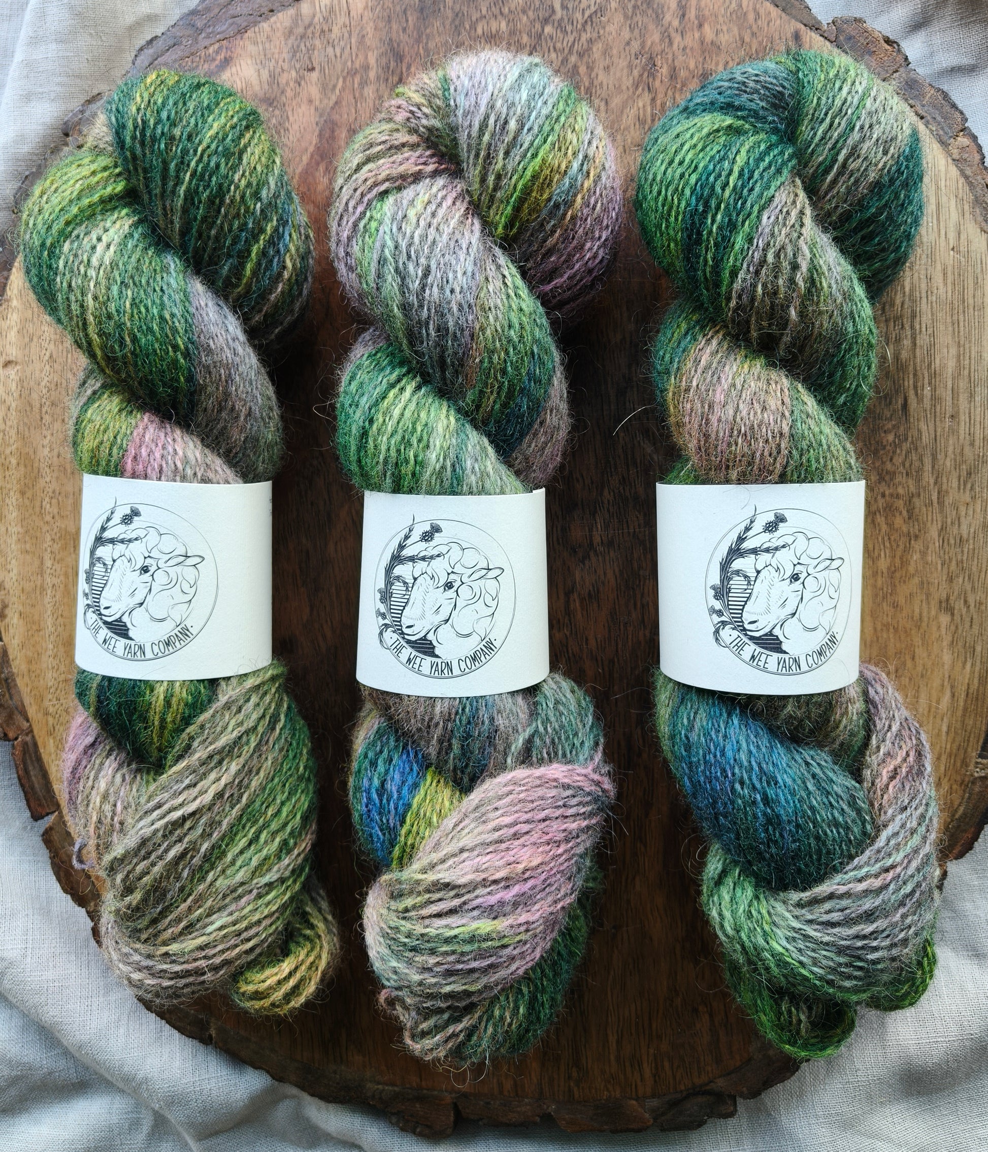 This yarn is spun in Denmark by Hjelholts Uldspinderi, it's the same composition as their Dansk Pelsuld but spun a little thicker to give a DK weight yarn.