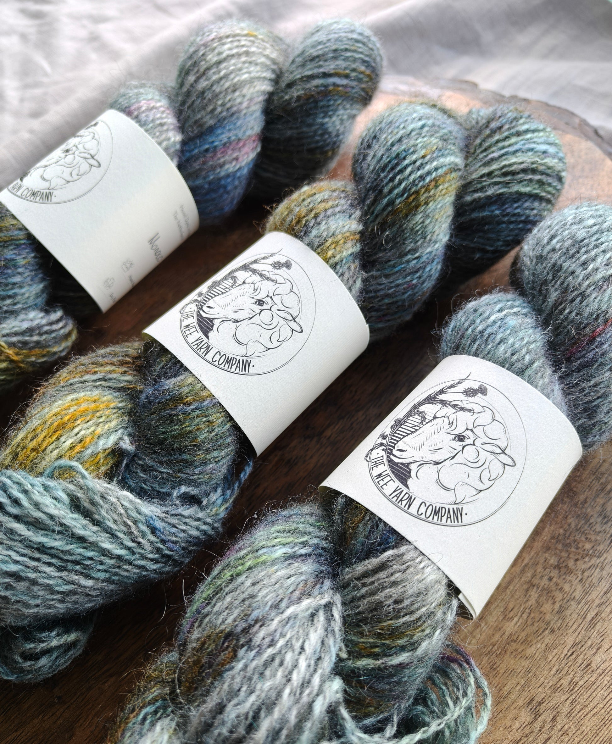 This yarn is spun in Denmark by Hjelholts Uldspinderi, it's the same composition as their Dansk Pelsuld but spun a little thicker to give a DK weight yarn.