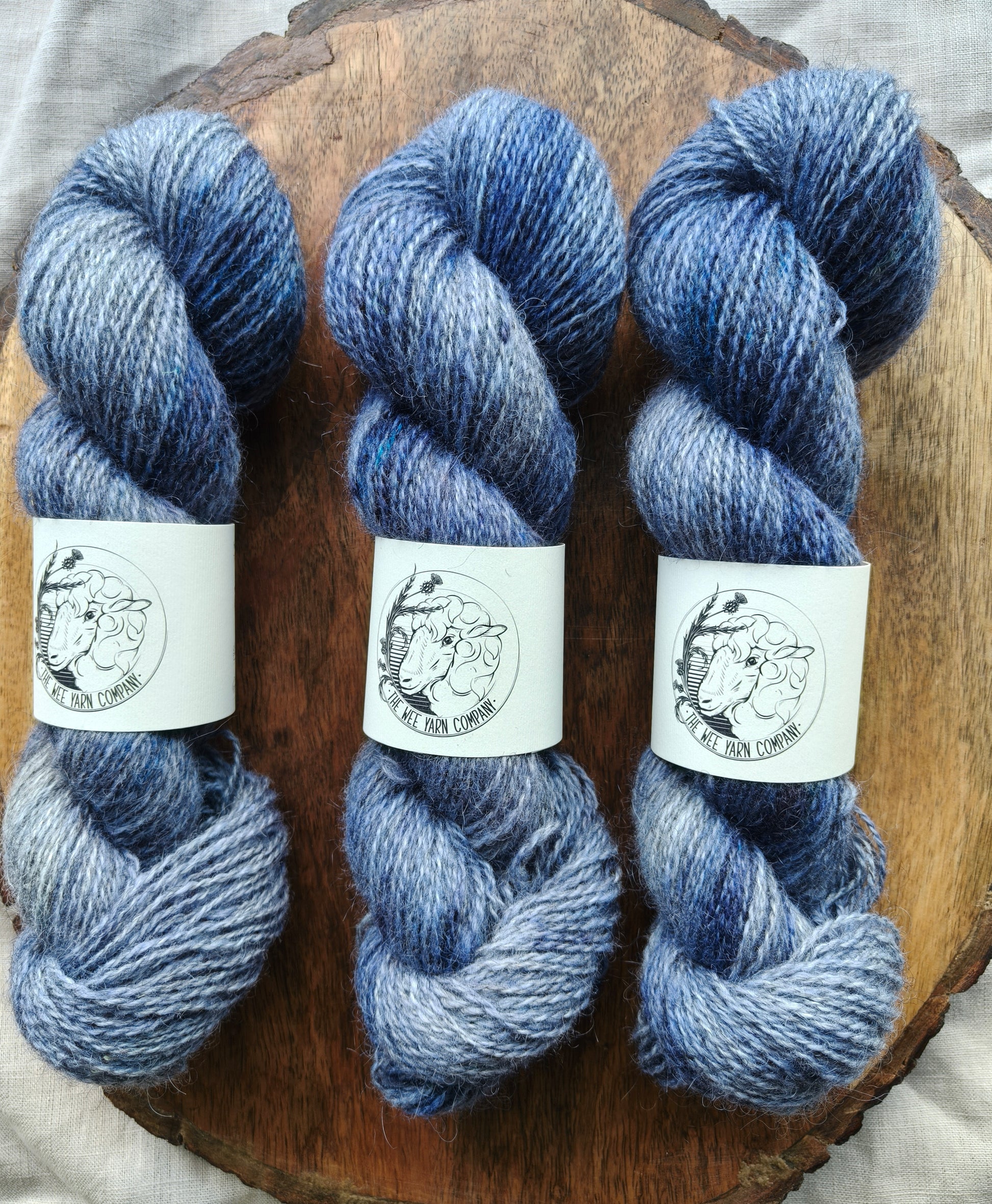 This yarn is spun in Denmark by Hjelholts Uldspinderi, it's the same composition as their Dansk Pelsuld but spun a little thicker to give a DK weight yarn.