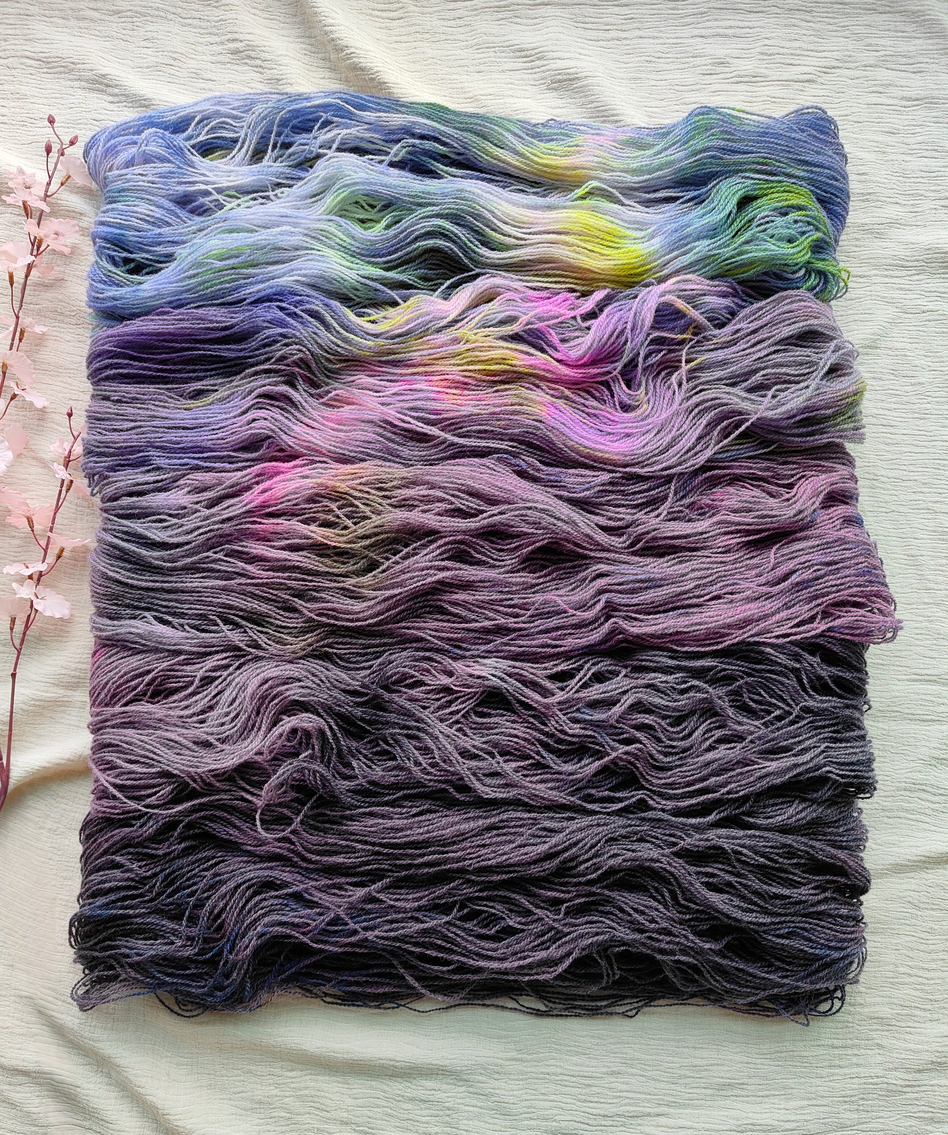 When dyeing yarn we fully exhaust all pigments before going to the rinsing step. Despite the care we put into the rinsing process, mild bleeding is common in hand dyed yarn and if you have a skein with a bright or dark color, or it contains speckles, play it safe by rinsing the skein in cold water and some wool wash and let it dry before casting on.